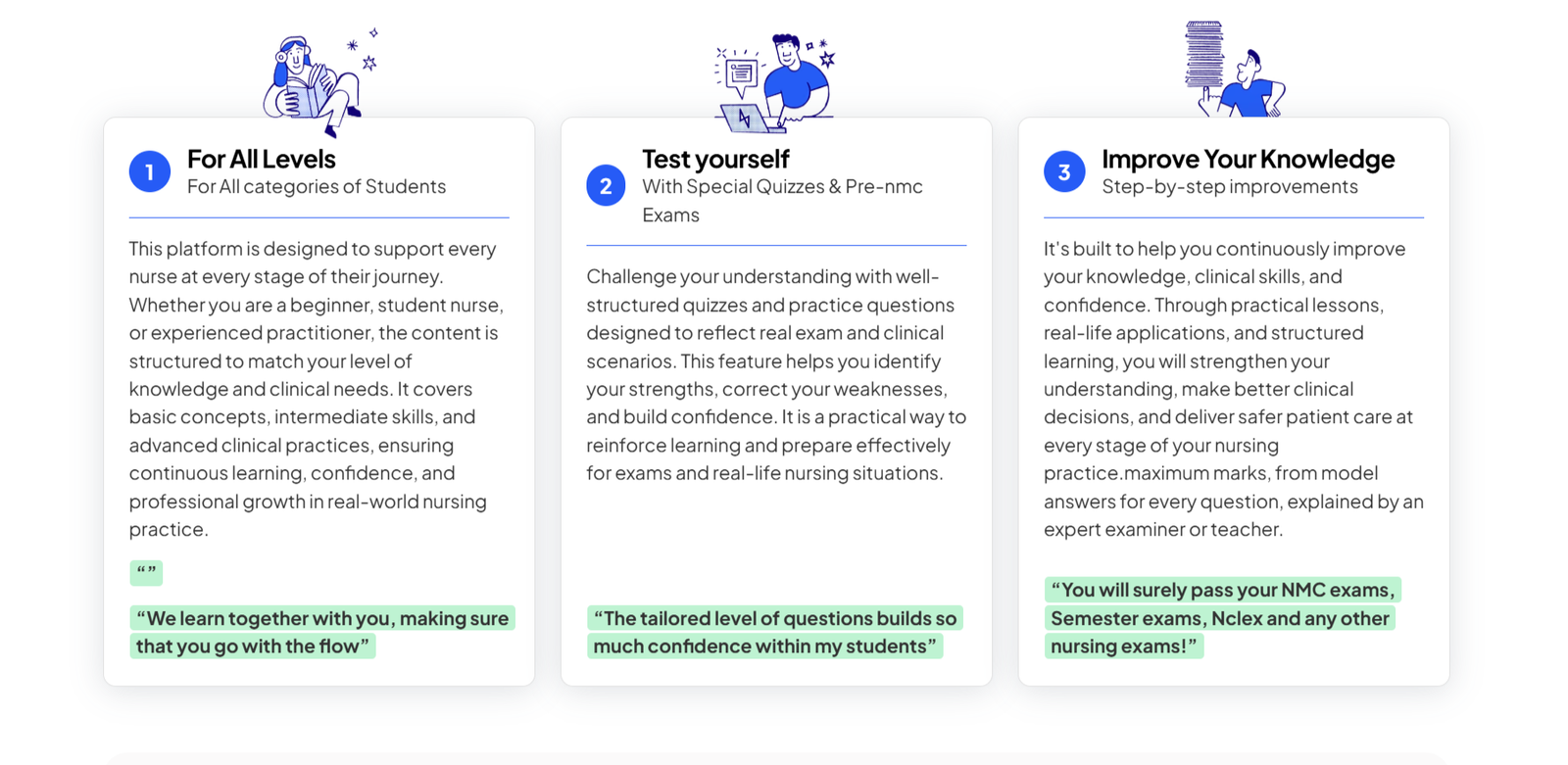 All courses, Quizzes, Mocks & Assessments will be available for all nursing students, 2026 and beyond. All nursing candidates must participate in our learning activities.
